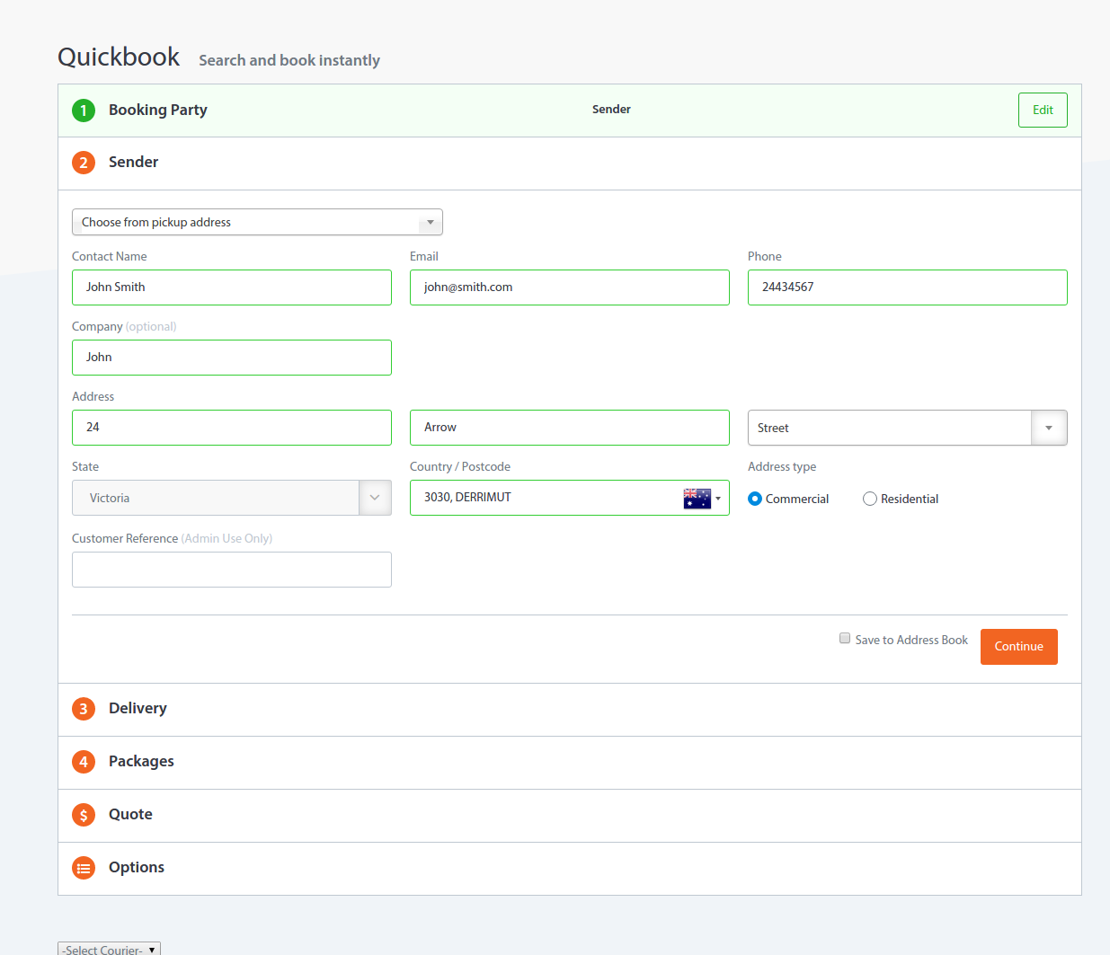 Fill all details on the Quickbook screen in order to complete the booking.