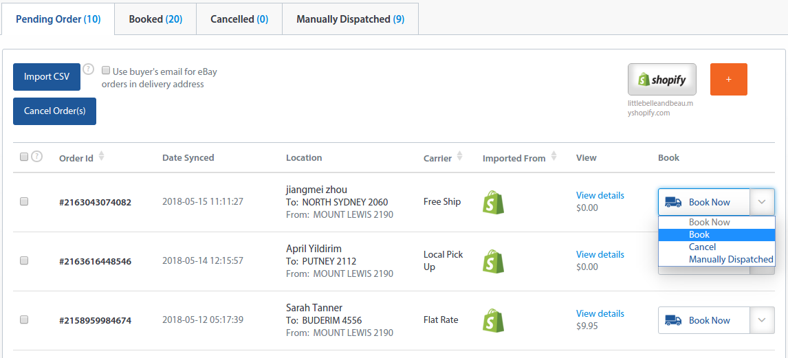 5. After the .csv file has been imported successfully, a list of orders will be displayed