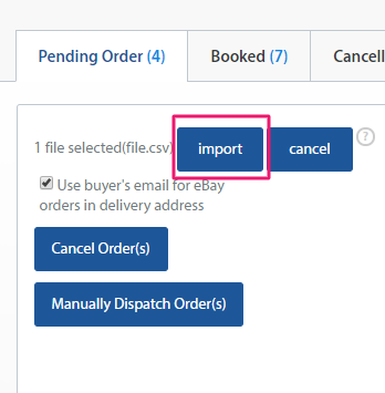 4. Click on the IMPORT button to upload all orders from CSV file